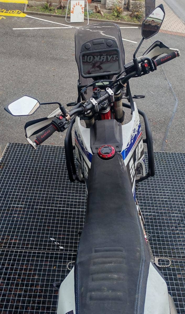 AJP PR7 r.v. 2023, po prvním majiteli, najeto 2176 km, STK 4/2029, laděný výfukový systém DOMA Racing, airbox a jiná řídící jednotka!! s tímto setupem produkuju PR7 více než 61 koní, výztuhy chladičů, padací rámy, sníženo na přepákování, cena včetně daně - možný odpočet DPH